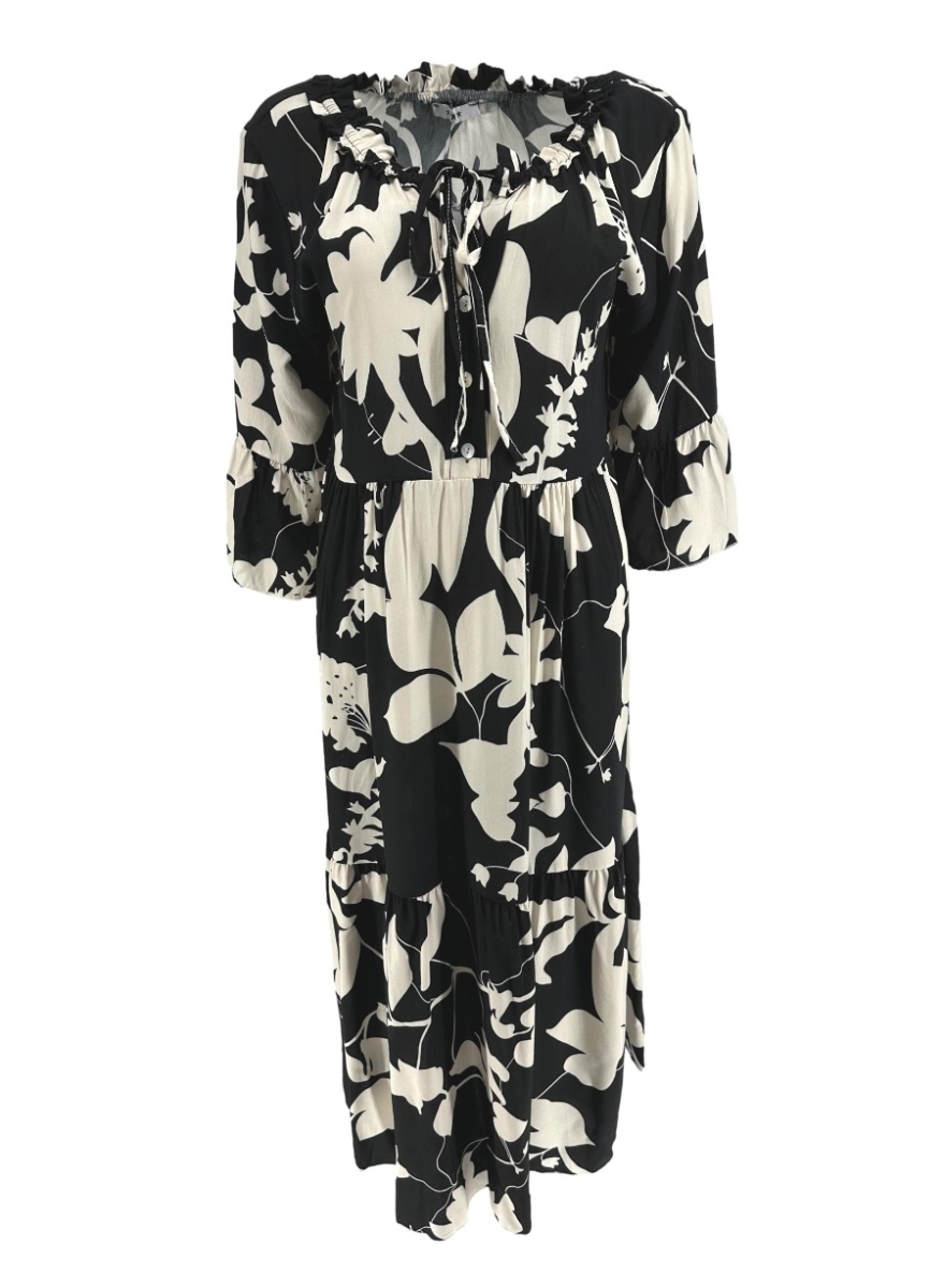 De jurk is beschikbaar in 1 maat en is geschikt voor de maten: 36 tot 40/42. (Voor de kleinere maten is de jurk meer oversized).